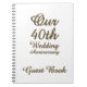 Nuestro 40° Aniversario Fiesta Moda del Libro de Invitados Elegante Tipografía de Oro Blanco, Bloc de notas en espiral