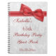 Sesenta quintas mujeres elegantes del libro de visitas de la fiesta de cumpleaños. 65.o ¡Fiesta de cumpleaños! Fondo blanco hermoso del modelo del damasco con un arco y una imagen rojos románticos bonitos, elegantes de la cinta. Estos libros de visitas atractivos, con clase son perfectos para las mujeres y se adornan/se imprimen en la parte delantera solamente. Las mujeres amarán este libro de visitas moderno elegante de la fiesta de cumpleaños. Todo el texto es completamente adaptable cumplir sus requisitos. OBSERVE POR FAVOR: Todos los productos en Zazzle tienen imágenes impresas del plano. Imágenes del arco y de la cinta compradas de digital-diseño-por-Elena. Si usted necesita alguna ayuda que modifica su producto para requisitos particulares me entra en contacto con por favor a través de mi tienda y me placeré ayudar.