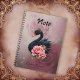 A touch of rose and swan's glow. This enchanting design depicts an elegant black swan, immediately eye-catching with its smooth, dark plumage and bright orange beak. A delicate floral arrangement perches atop its head, emphasizing its regal grace. Delicate pink blossoms, presumably peonies, are artfully grouped around the swan's body, lending the image a romantic and elegant touch. The background consists of a gentle gradient in shades of pink, immersing the scene in a dreamy, almost magical atmosphere. The interplay of the jet-black feathers, the vibrant flowers, and the soft gradient creates a harmonious overall image full of grace and love.