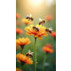 Abejas de burbujas, flores amarillas y miel de abeja. Personaliza y agrega tu nombre y tu texto.