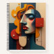 An abstract, multi-dimensional portrait, likely of a woman, rendered in a modern, geometric style with layered planes that give it a sculptural feel. It features a striking color palette of blues, orange, red, and cream, highlighting a face in profile with sharp features, full red lips, and a distinct eye, all surrounded by flowing, abstract hair and various geometric shapes.