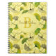 Cuaderno monogramado en espiral impreso con un patrón de hojas de gingko biloba de color pintado a mano. Puede personalizarlo con su nombre y inicial. Cuídate de la idea de la escuela para un entusiasta de la naturaleza, follaje y diseños de polluelos.