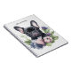 Portátil de arte de pug de perro negro personalizado con diseño floral en un estilo acuarela. Con flores moradas, azules y rosas y un adorable cachorro. Papel ideal para los amantes de las mascotas.