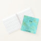 Un portátil sencillo pero elegante presenta un fondo de color turquesa con salpicaduras blancas. La palabra "NOTAS" está escrita en la parte superior, pero es personalizable, así que puedes cambiarla si lo deseas. Lo personalizas con tu nombre en la parte inferior. Disponible en una variedad de tamaños y tipos de papel.