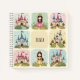 Este cuaderno de chicas personalizado cuenta con doodles con temática de cuento de hadas de adorables princesas esbozadas y castillos. Cada diseño presenta un estilo caprichoso y lúdico con detalles suaves y alegres. Los dibujos se encuentran en tonos pastel como verde menta suave, rosa bebe, azul pólvora y amarillo pálido.
