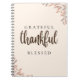 Presenta un texto 'Agradecido, agradecido, bendecido' sobre un fondo marrón claro/crema con diseño de esquina botánica. La mayoría de los tonos marrones son perfectos para la temporada de otoño y cosecha o para cualquier momento.