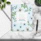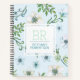 Diseño floral de acuarela azul, verde y blanco con tus iniciales y nombre personalizados en la portada.