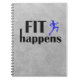 Una buena opción para estar motivado con tu rutina de fitness, este diseño de texto presenta un tipo de letra negro moderno con una silueta de una mujer trabajando fuera. El fondo es un patrón de pantalones de sudor gris grunge. Realice un seguimiento de su progreso, mantenga programaciones, registros, pesos y más en este portátil práctico.