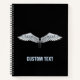 Ilustración de alas gris-azules abiertas. Texto personalizado.