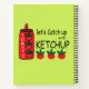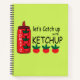 Pongamos al día con el cuaderno de Ketchup diseñado por Nisha Prabhu. Tomates rojos y ilustracion de ketchup con tipografía graciosa. Prepárate para añadir algo de sabor a tu toma de notas con este cuaderno de 'Let's Catch Up With Ketchup'! Perfecto para anotar ideas, garabatear o hacer un seguimiento de tus pensamientos, este cuaderno lúdico es imprescindible para los amantes del ketchup y los gourmets por igual. Con un diseño divertido y colorido que te hará sonreír cada vez que lo usas, este cuaderno es tan práctico como delicioso. Disfrute de este portátil único y encantador y especialice su colección de papelería.