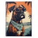 Diseño de arte gráfico colorido de un boxeador alemán en una playa tropical con palmeras. Impresionante regalo para el propietario germano-boxeador y amante alemán-boxer.