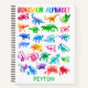 Cuaderno en Espiral de Patrón de Dinosaurios en Acuarela para la Escuela. Un dinosaurio para cada letra del alfabeto en silueta colorida en acuarela. Alfabeto en orden en la parte frontal, patrón en la parte trasera. Personalizable con nombre.