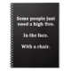 Por el amante del sarcasmo en todos nosotros. Echa un vistazo a este ingenioso "Algunas personas solo necesitan cinco. En la cara. Con una silla". diseño sobre prendas de vestir, tazas, muelles, botones y otros regalos únicos.