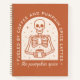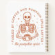 La frase "alimentada por el café y las especias de calabaza" captura una divertida atmósfera otoñal, a menudo con esqueletos que disfrutan del café y el popular sabor a calabaza.