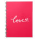 Texto de amor blanco con doodle cardíaco sobre diseño de fondo rosado.