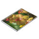 Un cierre encima de la fotografía de orquídeas amarillas hermosas imprimió en la cubierta de un cuaderno