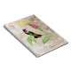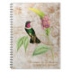 notebook de espiral personalizado con un ilustracion vintage del colibrí Sunangel gavilino gélido por Ametist -colibrí verde con garganta violeta roja encaramado en una planta tropical con flores rosas, sobre un fondo granulado vintage blanco roto con torres dorados y siluetas florales. Ideal para ser utilizado como un diario de ensueño, un libro de registro de jardinería o una escritura reflexiva. Un regalo perfecto para los amantes del colibrí y de la naturaleza.