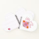 Ilustracion original con letras a mano que dicen Amor en el aire y dos amorosos pájaros con flores de corazón y tulipán en colores pastel. Hay un texto personalizado con un nombre en el reverso en un color que coincide con el diseño frontal. Tranquilidad y bonito diseño.
