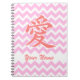 Este elegante cuaderno presenta el personaje chino y japonés de "Amor", escrito en rosa oscuro. El símbolo aparece en un fondo zigzag de color rosa y blanco pastel, con un espacio para añadir tu propio nombre o mensaje corto en un tipo de letra rosada. Si desea cambiar el color rosa claro del zig-zag, haga clic en "¡Personalizar!" para seleccionar un fondo diferente.