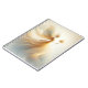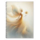 Obra de arte etérea con una figura envuelta en un vestido de hada dorada ondulante que sostiene una flor, con tonos pastel, arte abstracto minimalista y un fondo sereno que transmite una presencia elegante y fantasmal con un ambiente nebuloso y nebuloso.