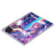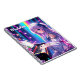 Portátil personalizado. chica de anime bonito tocando el piano rodeado de estrellas y flores de color morado, azul y rosa.