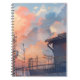 Anime sunset notebook featuring a stunning aesthetic cityscape with glowing golden hour clouds, soft pastel skies, and detailed rooftop scenery. The warm anime-style artwork captures that dreamy slice-of-life moment—perfect for fans of anime backgrounds, aesthetic sky art, and cozy sunset illustrations.