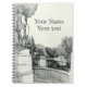 Cuaderno Antigua fuente en el parque con el niño de la escu