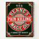 Anuncio de época para el dolor de Renne que mata el aceite mágico, con borde decorativo.