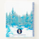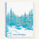 Una imagen estilizada y azul monotónica de árboles de coníferas cubiertos de nieve. Añade tu propio texto.