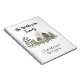 Este cuaderno personalizado presenta un diseño invernal acogedor. Una imagen de estilo acuarela de varios árboles en un pequeño bosque invernal se imprime en el centro. Un nombre de familia de muestra se imprime en la parte superior en una fuente de escritura elegante que puede personalizar para incluir su propio nombre o texto personalizado. Un título de muestra "Recetas de Navidad" se imprime en la parte inferior.