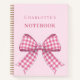 Un cuaderno de niñas para la escuela, el periodismo o el diario. Un fondo rosa suave y ruidoso, decorado con un gran arco a cuadros. Personalice y agregue un nombre.