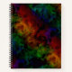 Este cuaderno encuadernado en espiral presenta una colorida acuarela de arcoiris abstracta colorida y una pintura con tinta sobre un fondo negro.
