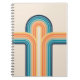 Ilustracion de estilo retro con arcos coloridos (amarillo, azul, naranja, azul marino, beige, turquesa) sobre fondo beige. Puede agregar su nombre/monograma para personalizar el elemento.