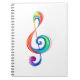 Tecla musical extraída de capas multicolores de colores arcoiris sobre fondo blanco.