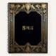 This beautiful art deco notebook has a gold frame with leaves and geometric elements on a black background. Very elegant, retro, and luxurious.