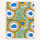 Arte gráfico moderno con fondo verde salvia con abstracto tibetano en amarillo, blanco y azul con líneas.