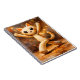 Esta alegre ilustración presenta un divertido gato de dibujos animados bailando con los brazos levantados y una expresión alegre. Representada en un estilo pictórico cálido y texturizado con iluminación suave y puntos brillantes en el fondo, la obra de arte evoca felicidad, movimiento y asombro infantil. Los tonos terrosos y un aspecto artesanal le dan un encanto acogedor de cuento, lo que hace que este cuaderno sea perfecto para escribir en un diario, hacer bocetos o tomar notas diarias con un toque de diversión y positividad.