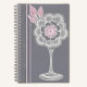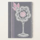 El rosa y el gris es un bonito diseño que muestra un fondo gris con rayas rosas en los lados. En el centro hay una copa de vidrio floral. Es el portátil perfecto para ofrecer a alguien especial.