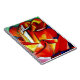 con el diseño original de arte de la pintura acuarela de Sacha Grossel Arte de la flor rosa roja en el primer plano, estilo macro. Este sujeto botánico tiene un diseño intenso y colorido de tonos rojos, amarillos y azules en un fondo verde. Este arte floral, abstracto en la intensidad de color, genera sentimientos de amor y romance y es para los amantes del arte floral y del color en todas partes.