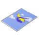 Cuaderno con un caprichoso avión amarillo y azul volando en el cielo nublado, creado con papel de construcción y manipulado en Photoshop por KLeighE de Hinterland Harmony’s Whimsical Cartoon Art ™