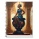 Hermosa niña sentada en el jarrón barroco caricaturizado artísticamente.