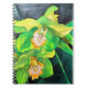 De un original cuadro de arte en acuarela de Sacha Grossel de flores de orquídeas verdes y amarillas en un estilo botánico pálido. Esta obra de arte original de estilo pop floral es vibrante y colorida. verde limón y amarillo limón sobre un fondo verde oscuro texturado.