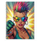 Una colorida mujer vibrante con gafas de sol arcoiris LGBT Lesbiana Mohawk Uppercut Pop Art notebook .