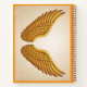 Un diseño simple y de alas doradas que simboliza la libertad y la trascendencia, ambientado en un fondo de puntos claros, evocando la elevación y la búsqueda de un potencial ilimitado. "Imagen original generada por Meta AI. La IA generó obras de arte. Con licencia CC BY-SA 4.0."