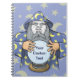 Viejo mago con capa azul y bola mágica de cristal. Usa la foto cara a personalizar. Texto personalizado.