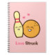 ¡El pasador hembra con rayas rojas es arrollado por la bola de bolos del naranja y es golpeado por el amor! Un lindo personalizado de juego de palabras para cualquiera que esté en una dulce relación romántica y quiera compartir su amor y romance con el mundo!