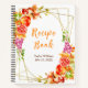 This beautiful and elegant recipe book features watercolor pomegranate, apples, grapes, mushrooms and foliage on a gold geometric frame. The text combines handwritten script and serif fonts for a stylish and modern look. This makes a great wedding or bridal shower gift, a gift for someone special or for your own use in your kitchen.