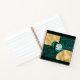 Agradable y contemporáneo, se trata de un diseño cuadrado con una representación en forma de corazón de pájaros lunares en el centro. La tapa dura se muestra con los sofisticados colores combinados de oro, verde azulado y negro. Un lado está delineado en negro y el otro en verde azulado. El texto principal es para personalización.