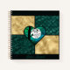 Cuaderno Aves verde azuladas, doradas y negras bajo la luz