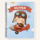 Este cuaderno de niños personalizado incluye un bebé piloto al estilo personalizado y gorgoso que vuela un avión rojo pequeño y vintage. El lindo piloto pequeño lleva un clásico gorra de aviador marrón y gafas. Una pancarta roja sobre el diseño con el nombre de su hijo.